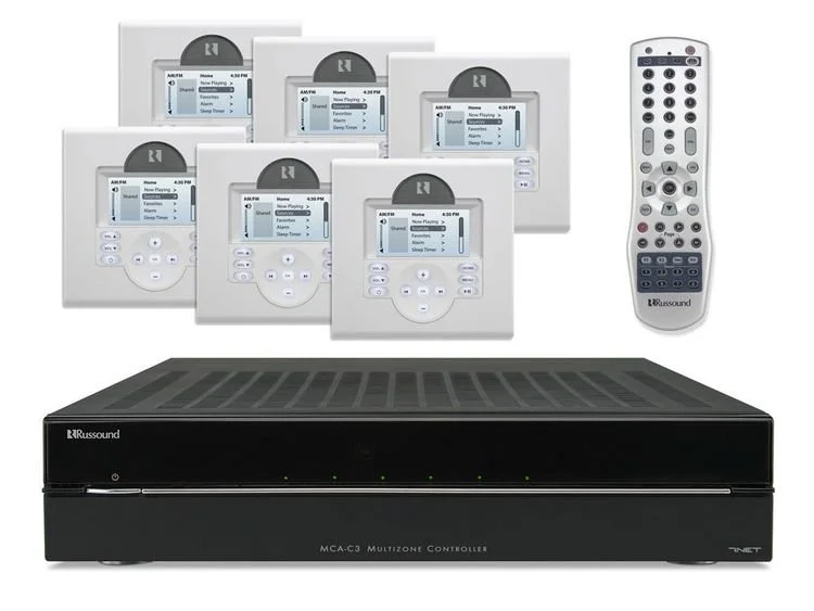 • In-ceiling or in-wall speakers for a clean, seamless look